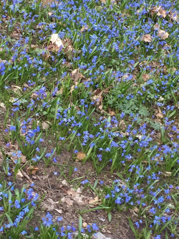 Beautiful flowers, blue bells I think, along a ravine trail in Toronto. The first understory flower of the spring!