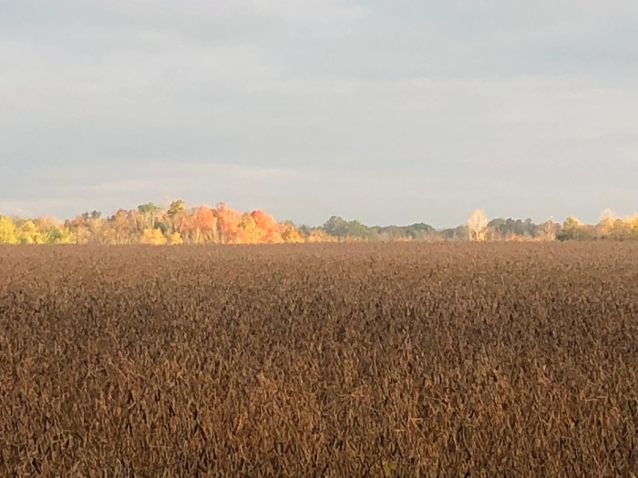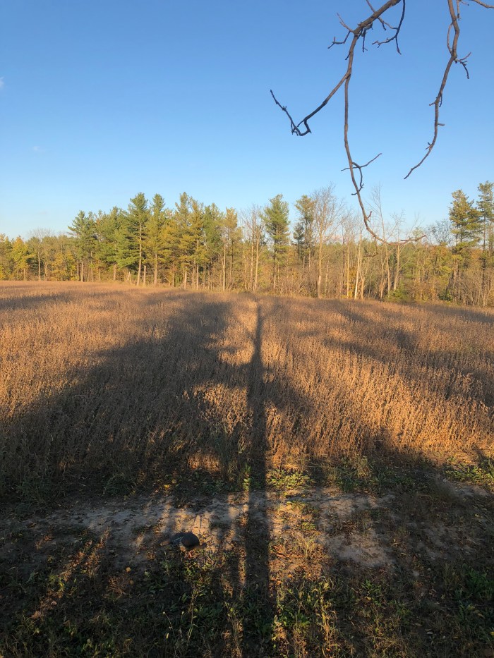 Where am I the question Thoreau asks? One way to take question is in the very literal sense. I was for over two days immersed within the natural environment from earliest morning to after sundown. On day 1 in the early morning I was in a ground blind adjacent to a large field of soy and a smaller field of mature corn. I was positioned on the edge of both fields backing onto a forest stand of maple, ash, hemlock, birch, and oak. Orion the Hunter was westering in the sky when I was setting out. A more fitting constellation I could not imagine for the beginning of the hunt. Before the sun rose, when in the blind I heard owls hooting. Later numbers of crows, blue jays and chickadees chittered and called, up early as the sun rose, and then as the morning began to mature, I saw six different deer, 3 does in a group running across the soy, a solitary buck (6-8 pointer), probing along the wooded margin, and two additional does venturing from the forest stands. All seemed wary of my blind and while they did not get spooked and run, they did not stick around either, nor did they come close enough for hunting success.