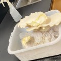 Oyster mushroom sporulating in the lab and then the risotto that resulted. Mushroom growing on the block